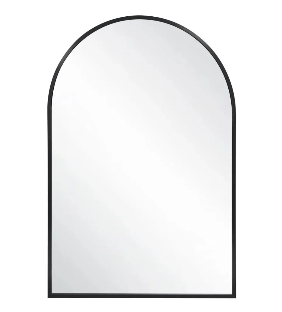An arched mirror blends modern minimalism with timeless charm